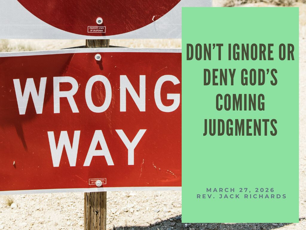 DON’T IGNORE OR DENY GOD’S COMING JUDGMENTS. They will happen. Until then, let these prophetic warnings motivate you to pray that people will personally come to know Jesus Christ as their Savior and Lord. And may these serious, God declared warnings, motivate you to share the Good News with people.